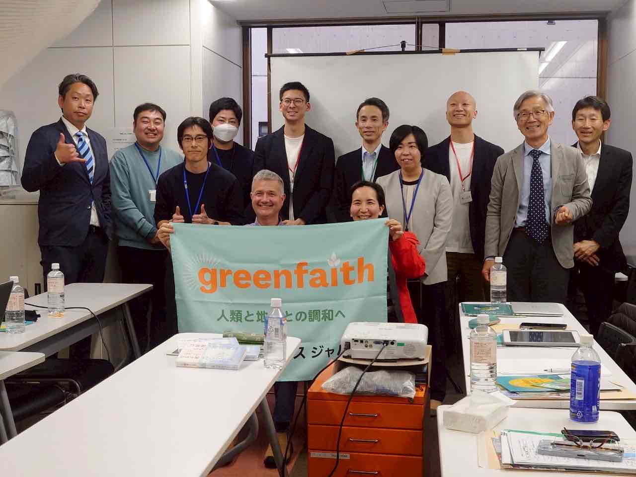 3月29日、第一回「グリーンフェイスジャパン・フェローシッププログラム」が始まりました。本プログラムには、九州、東北、関西をはじめとする全国各地から、神道・仏教・キリスト教・新宗教を含む6教団の13名の青年リーダーが参加しました。当日は、グリーンフェイス常務理事のフレッチャー・ハーパー代表による歓迎挨拶を行った後、参加者それぞれが自己紹介を行い、気候問題に対する関心事項を共有しました。 午後には、NPO法人気候ネットワークの桃井貴子さんによる講義が行われ、参加者は世界の気候変動の問題や現状、 脱炭素に向けた国連やG7の国際的な合意、日本政府の取り組みと課題について深く学びました。