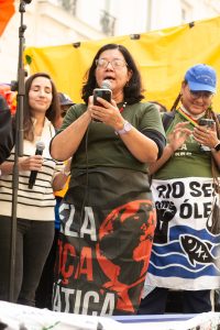 “Eu sou uma mulher negra vinda da periferia do Rio de Janeiro e minha luta é por justiça ambiental e contra o racismo ambiental. É fundamental começar por essa perspectiva, pois a crise climática não nos atinge da mesma forma: são as comunidades periféricas que sofrem mais com a chuva pela ausência de saneamento, e são as comunidades tradicionais as mais afetadas pelo petróleo.”