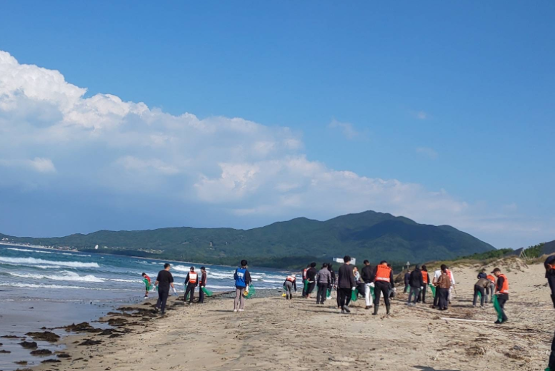 実際にさつき海岸で行われたビーチクリーンでは、宗像地域の地形や砂丘の変遷を学ぶ現地視察も実施.古代から地形を活かして神社や集会所を築いてきた知恵に触れ、自然と人との関係性を見つめ直す機会となりました.